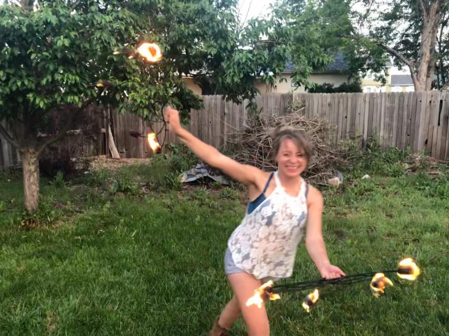 I have experience with fire hooping and fire fans. I am training to be an aerialist. I also have 4 years experience as a brand ambassador/promo model.