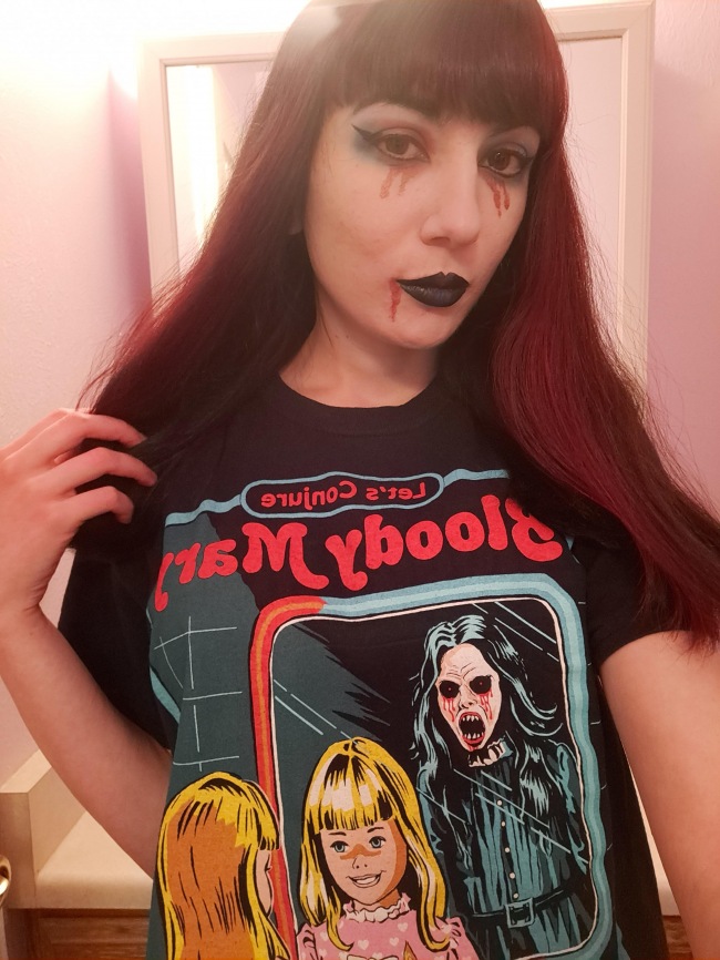 For work, I have done stocking and cleaning at a teacher's warehouse, and have been a sales associate at Spirit Halloween. But I have also had some experience in selling merch at shows, going on tour with bands, reviewing albums/interviewing musicians for a metal website, and have done some photo shoots.